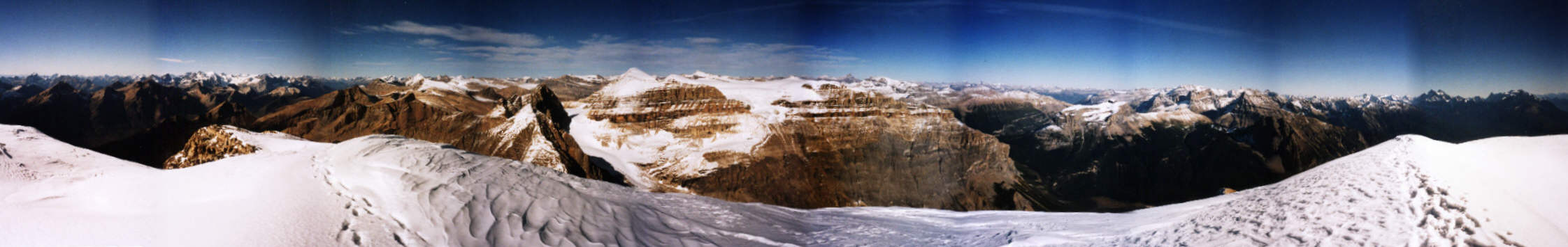 Dan and Sonny stand beside the cairn on the 3040-metre summit. Click here for a panoramic view from the top. |
