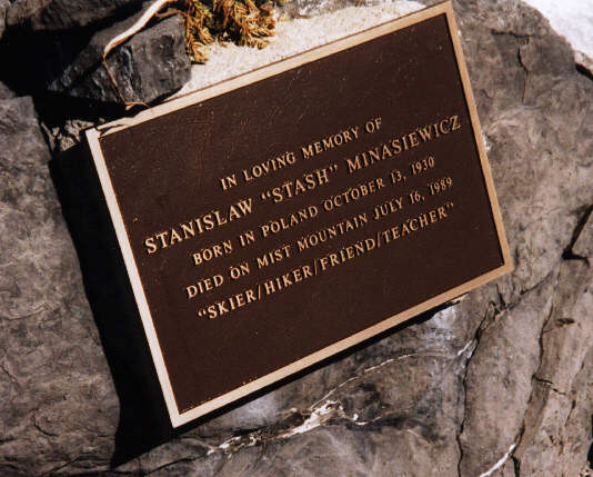 Sonny stands atop the summit cairn of Mist Mountain. Click here to look at the memorial plaque cemented to the cairn. |