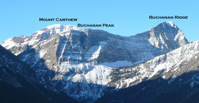 Click here to see a photo of Mount Carthew, Buchanan Peak and Buchanan Ridge as seen from the northeast.