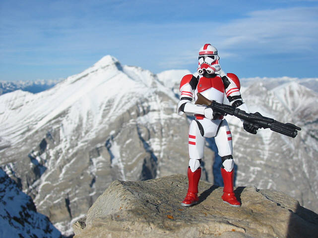 After signing the summit register, we descended via the notch (Vern's route of ascent). There is a short rock step which has to be down-climbed to reach the notch, and this step is uncomfortably close to the airy drop on the north side of the mountain. Vern had no problems descending here and was already across the notch when I started down the step. As I reached down to grab hold of a rock, my ice axe slipped out of my hand and dropped over the north side of the summit ridge. Curses. I scrambled down to the notch and peered over the edge to see my ice axe sticking out of some powdery snow about three metres below me. Vern had already disappeared down the summit ridge and was oblivious to my predicament. I knew that I would not be able to descend the mountain safely without my ice axe. Without a second thought, I quickly cleared off the small snow cornice clinging to the edge of the notch and lowered myself down a steep crack on the north side of the mountain. Good holds were hard to find, but I eventually descended far enough that I could use my ski pole to hook and reel in my ice axe. It was at this point that I began to realize what a crazy idea it was to drop down the north face to retrieve the axe. I was standing on tenuous footholds at the top of a steep snow slope, and everything around me seemed to drop off into the abyss. The crack I had just descended also looked much tougher to climb back up. I stood there for about a minute before I gathered enough strength and courage to scramble back up the crack. This was some of the most desperate scrambling I have ever done; a slip here would have been catastrophic if not fatal. After a few trying moments, I managed to pull myself up and grab onto a reliable handhold at the top of the crack. I then swung my ice axe over the top and jammed it into the hard snow. Using the axe for leverage, I pulled myself up and over and breathed a huge sigh of relief.