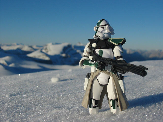 summit, Sonny retraces his steps down the ridge. Bow Lake is