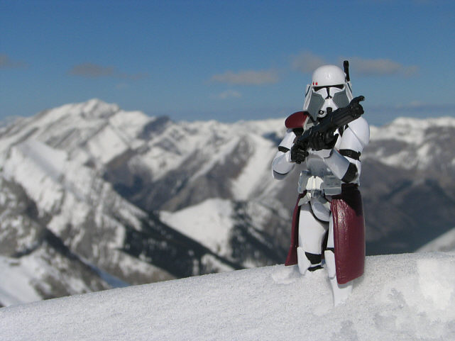 footsteps up the snow slope. Mount Tyrwhitt is visible at upper