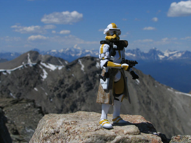 The next morning (1 July 2006), Kelly and I packed up our tent and drove to Jasper townsite for a quick breakfast before heading up the Jasper Tramway ($23.00 CAD per adult). From the upper tram terminal, it took Kelly (fighting a lingering bad cold) and me about 35 minutes to reach the top of The Whistlers. Leaving the crowds behind, we dropped down to the meadows to the west where we ran into a Francophone who was just returning from an aborted attempt on the summit of Indian Ridge. He claimed that the rocks just below the summit were "overhanging", and he felt that it was too dangerous to climb up. Unfazed, Kelly and I continued up the beaten trail until we reached a patch of snow just below the summit. Here, the trail peters out, and the terrain is looser and steeper. Although this was not a problem for me, Kelly had reached the limits of her comfort zone and elected to wait for me while I dashed up to tag the summit. Upon reaching the summit, I felt it would be a shame to pass up traversing the ridge on such a gorgeous day. I yelled down to Kelly that I was doing the traverse and would meet her back at the meadows we crossed earlier. It took me about 45 minutes to traverse to the high point at the northwest end of Indian Ridge. Beyond that high point, a few minor challenges only made the scrambling more enjoyable, and I had no serious difficulties descending the ridge and eventually rejoining Kelly. A final climb over The Whistlers had us back at the upper tram terminal after a very leisurely round-trip time of over 7 hours. Unfortunately, the upper tram terminal was a zoo as hordes of descending tourists crowded around a beleaguered ticket attendant. Kelly and I waited for almost an hour before we were able to get onto a car and descend to the lower tram terminal.