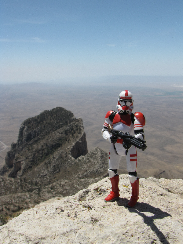 That pyramid looks sharp enough to poke out someone's eye! Here is a view of Guadalupe Peak's summit from a slightly lower bump to the west.