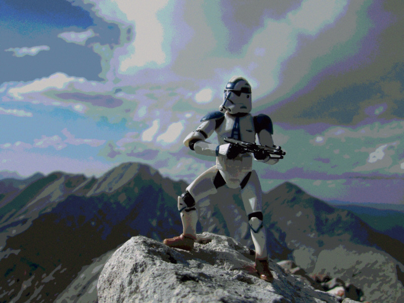 For the most part, I followed Nugara's suggestion to ascend the northeast ridge and descend the east face, but the real crux of the trip is getting across the terrain between the trail and the scramble routes with the least amount of suffering. A flagged route which veers off the Gunnery Creek trail just beyond the pass is ill-defined and easy to lose in the trees. I eventually abandoned the flagged route and just bushwhacked up to Nugara's "grassy hill" which grants the first good view of Holy Cross Mountain's east face. From there, Nugara's description nonchalantly says to "drop down to the creek from the hill, cross the water, and then head up the other side through light forest." I found this to be much less trivial than it sounds as the banks on either side of the creek are very steep and not altogether easy to negotiate. With the long uninteresting approach, the bushy traverse over the hill and the exhausting grunt up to the rock band guarding the northeast ridge, I felt rather fatigued four hours into the trip and even began to wonder why I was not back in Calgary golfing instead! However, once I scrambled through the weakness in the rock band and began tackling the northeast ridge proper, I perked up considerably. I stuck close to the crest of the ridge throughout the ascent and relished scrambling up the handful of challenging cliff bands along the way. There was hardly a breath of wind as I reached the summit ridge, and I continued up to the summit without any trouble.