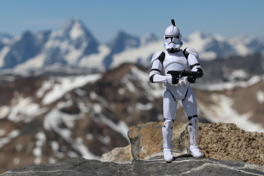 Mountain, Dogtooth Peak (left) and Moonraker Peak (right) finally