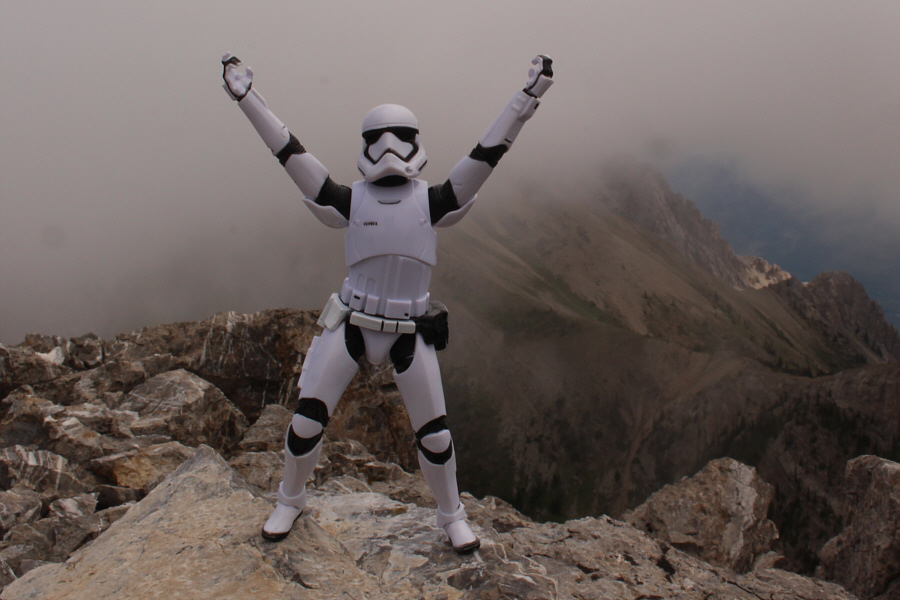Yeesh, how did we ever get down that thing?? Here is a look back at Ghost Rider Peak's summit block from its southeastern outlier.