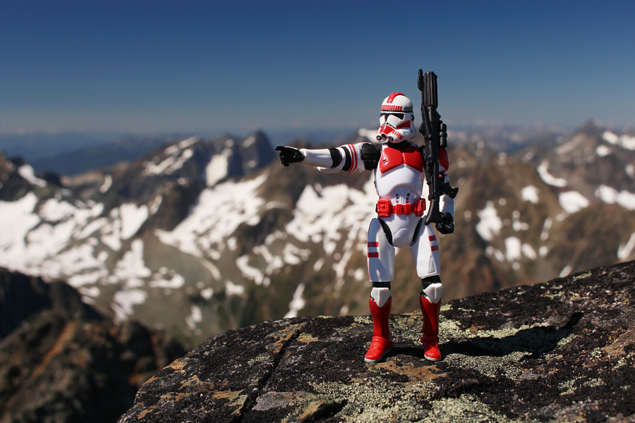 As Zosia leaves the summit, wildfire smoke can be seen in the distance at far right. |