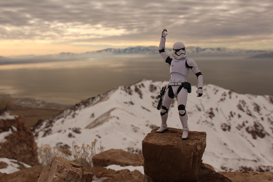 Back at the junction after returning from Dooly Knob, Zosia and I resumed our ascent of Frary Peak. The trail swings to the west here and goes through a short tunnel among some boulders before climbing steadily up the ridge. Zosia donned her cleats to climb up some icy spots near the boulders, but I managed just fine with my tattered North Face shoes. We encountered more snow higher up the ridge, but thankfully, the passage of previous hikers saved us the trouble of route-finding and breaking trail. We eventually bypassed another named summit--Stringham Peak--before gaining the ridge crest and arriving at an antenna with a view of the final approach to the top of Frary Peak. Two different routes exist here. The ridge beyond the antenna is a Class 3 scramble with mild exposure while the official trail dips slightly and traverses across the northwest face before winding up the south side of the summit. On this day, the presence of snow made both routes look spicier than normal, and in the end, we opted to stick with the less technical official trail. Although the snow-covered trail was already broken, some parts of the northwest face are unnervingly steep, and I would have felt more at ease with an ice axe in hand. Fortunately, we made it across without any slips, and shortly after, we were standing on the highest point of Antelope Island.