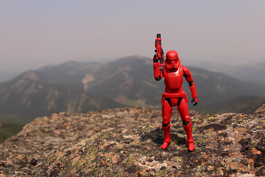 Low clouds and haze from forest fire smoke nearly obscure several peaks in the vicinity of Crowsnest Pass. |