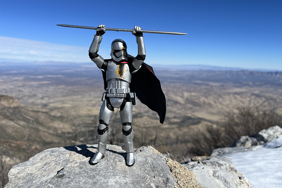 Zosia is already warm after a steady ascent from Montezuma Pass. Coronado Peak is barely visible just left of centre. |