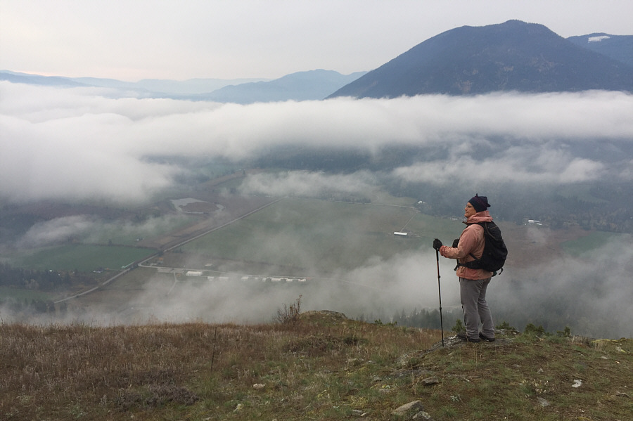 Just below the top of Dufferin Hill is a wooden deck which serves as a viewpoint overlooking the city of Kamloops. |